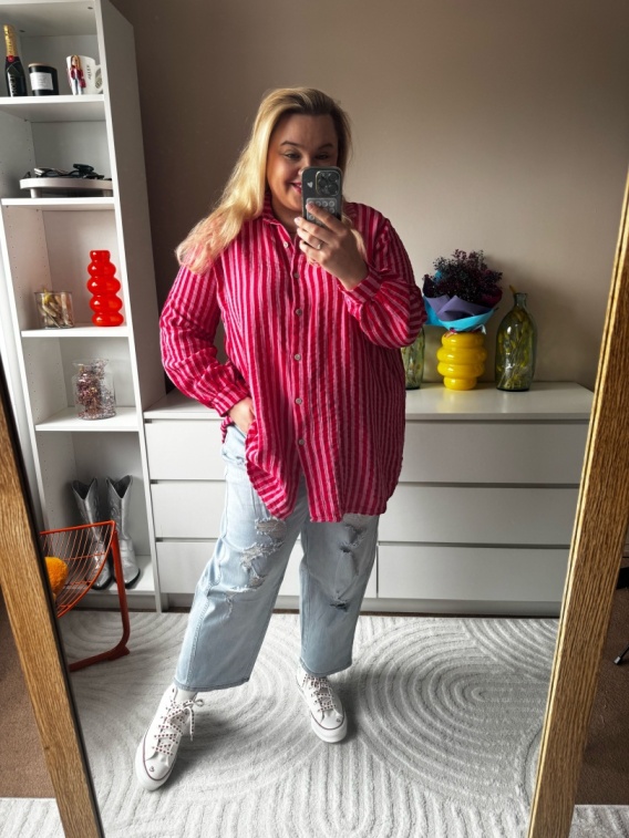 Przy fasonach oversize pamiętaj, że ubranie z natury ma być luźniejsze i „za duże" - taki jest jego urok! 💕